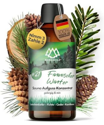 • NORDHOLZ® Saunaaufguss [54 Sorten 15ml, 100ml, 250ml] – Sauna Aufgussmittel für intensive & erholsame – Sauna Zubehör (#21 Finnischer Winter, 100ml)